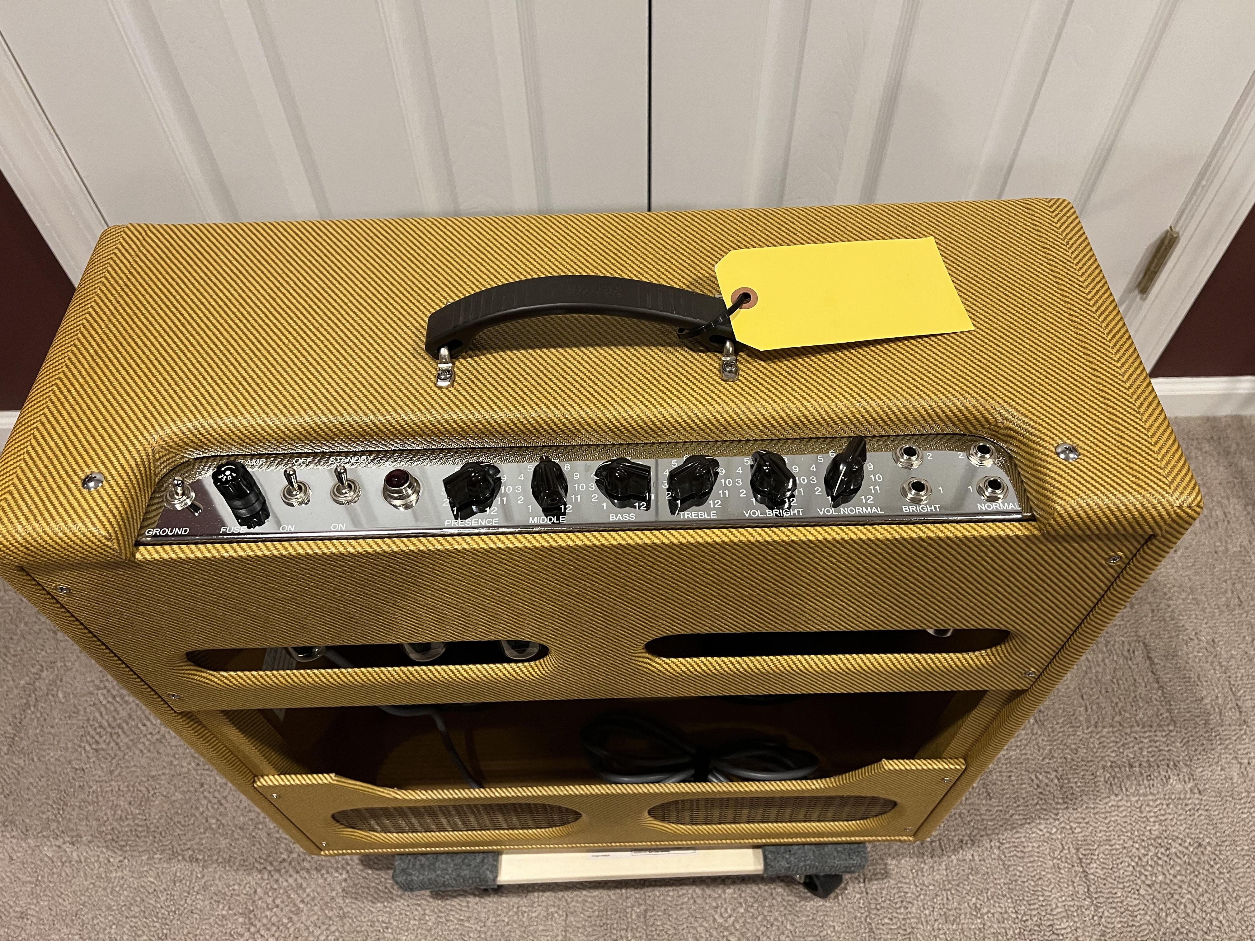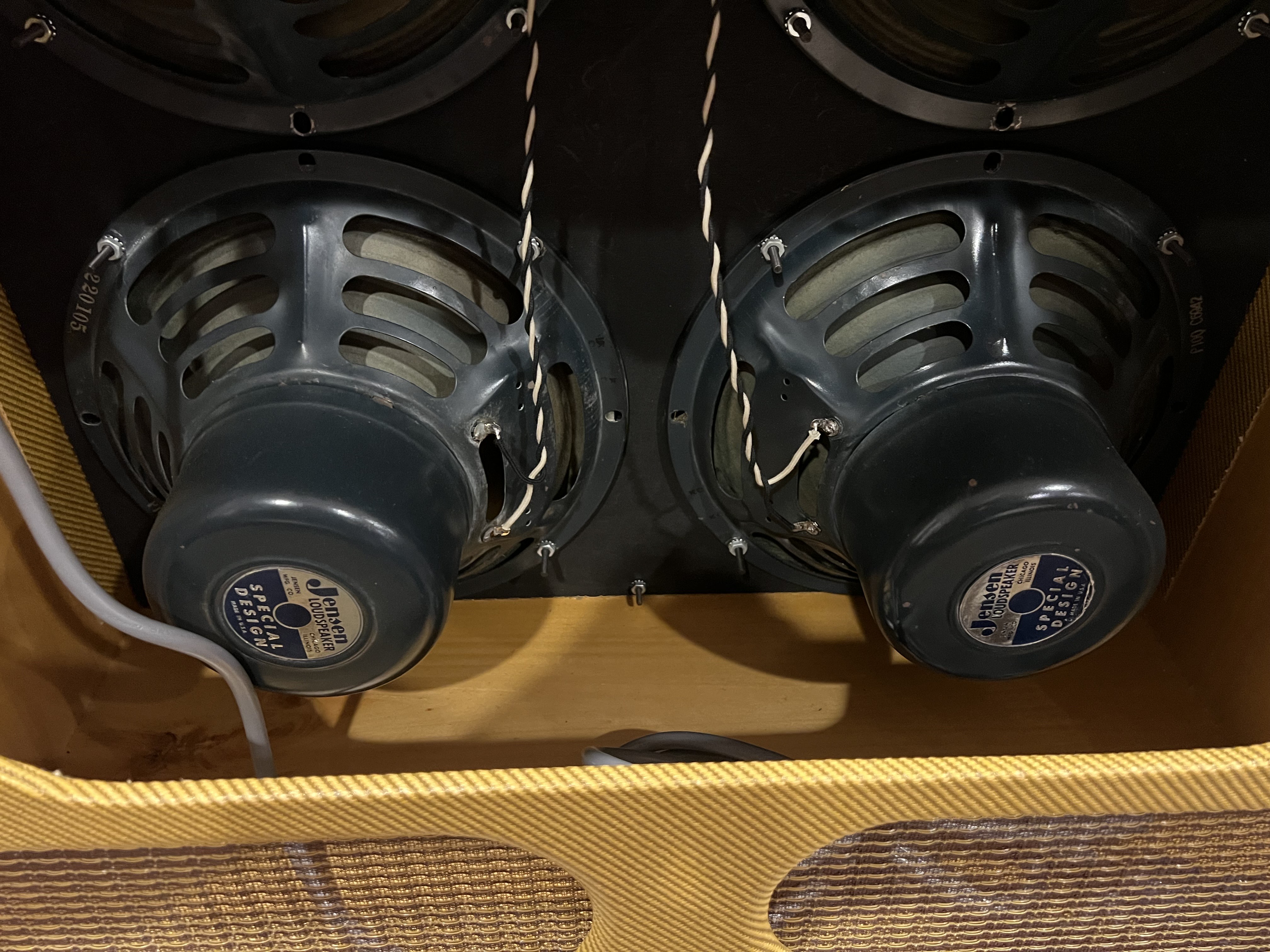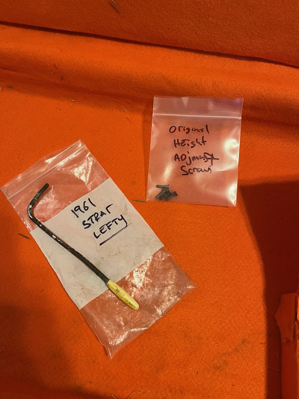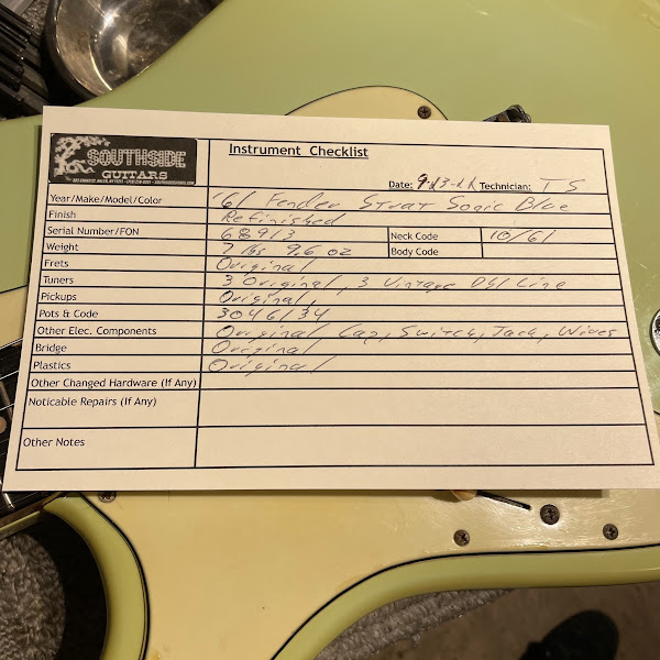 This guitar has all of the desirable 1960 features, plus the 59 style Bigsby which Setzer uses. It is 100% original with the white cowboy case and strap. True left thumbnail inlays, 3-piece neck, desirable headstock shape with no “wings.”