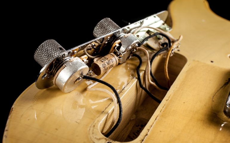 ·Early 50s style hardware and vintage early 1950s Blackguard style pickups.