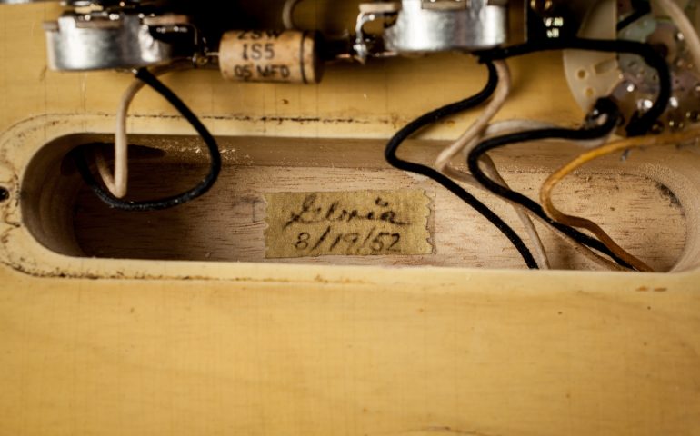 • Body date is Thaddio 6/3/52. Neck date is TG 11/3/52. Control cavity tape reads Gloria 8/19/52.